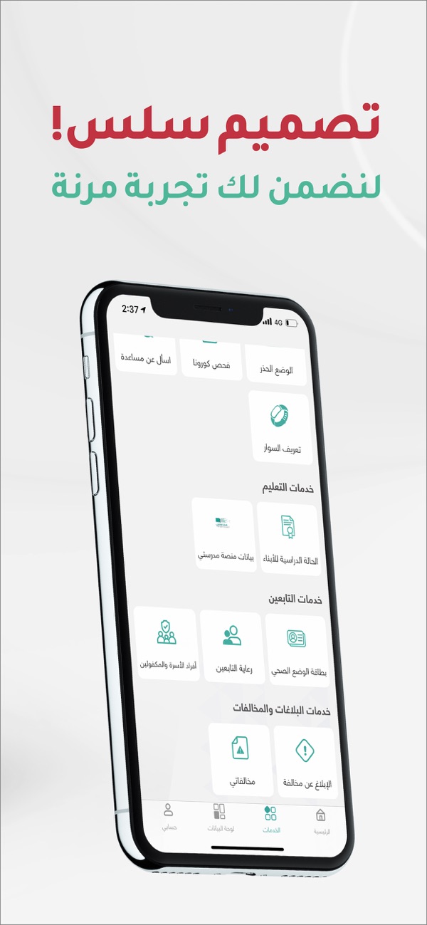 يسمح للمواطنين والمقيمين بطلب تصاريح التنقل في حالات الضرورة أثناء حظر التجول ؛ متابعة حالة طلب التصريح الخاص بهم أثناء حظر التجول ؛ وإخطارهم عندما يكونون بالقرب من مناطق معدية أو معزولة.